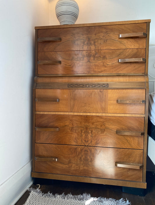 1950s Antique Highboy Walnut Dresser