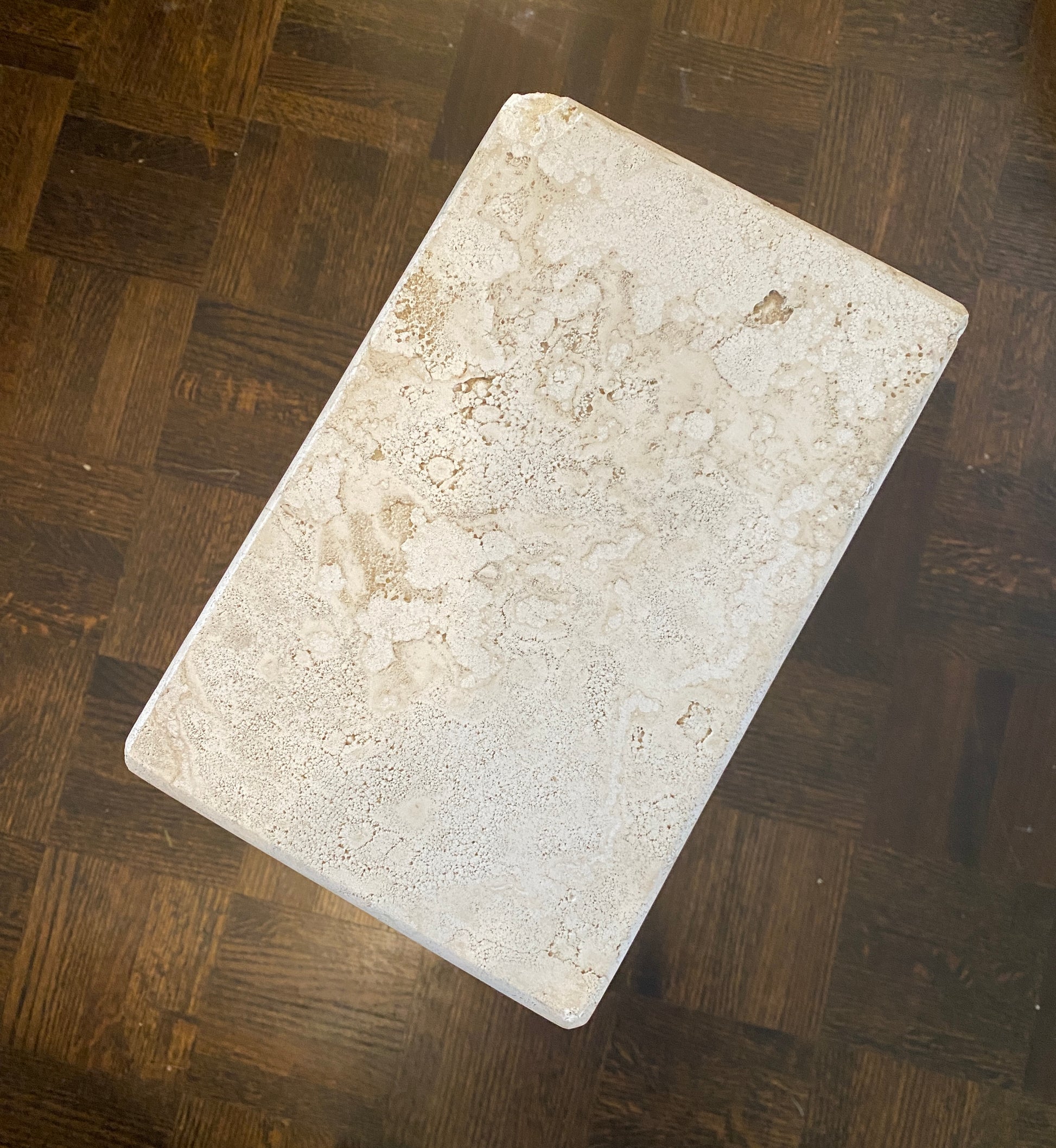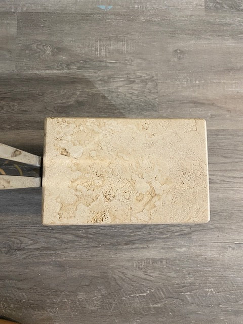 This standing lamp has serious flair! It’s in fabulous condition and will add a dynamic energy to your space. Its iconic classic design means that it will literally suit and elevate any space with any decor. Yes it is that beautiful! $1275 inc. delivery anywhere in the GTA. Please note that the top of the travertine base has 2 slightly nicked corners, please see last 3 photos. Re-priced to reflect these imperfections.